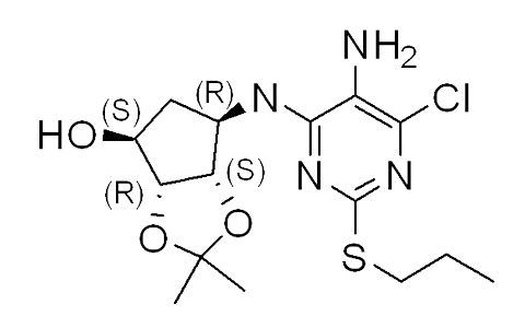 4H-Cyclopenta-1,3-dioxol-4-ol, 6-[[5-amino-6-chloro-2-(propylthio)-4-pyrimidinyl]amino]tetrahydro-2,2-dimethyl-, (3aR,4S,6R,6aS)-