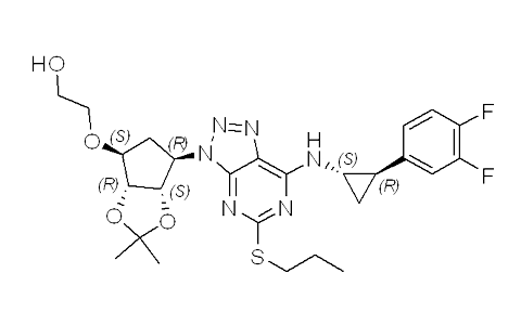 Ethanol, 2-[[(3aS,4R,6S,6aR)-6-[7-[[(1R,2S)-2-(3,4-difluorophenyl)cyclopropyl]amino]-5-(propylthio)-3H-1,2,3-triazolo[4,5-d]pyrimidin-3-yl]tetrahydro-2,2-dimethyl-4H-cyclopenta-1,3-dioxol-4-yl]oxy]-